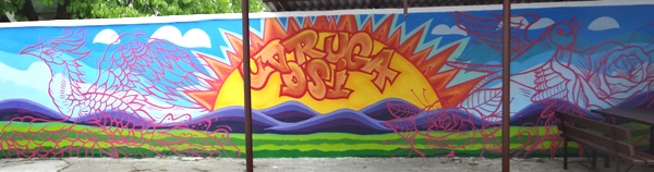 popravljen oronuli zid i oslikan od strane lokalnih umjetnika. Odvezeno