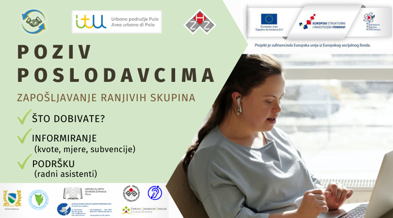 Pozivaju se poslodavci sa područja južne Istre na uključenje u procese zapošljavanja osoba iz ranjivih skupina, a s namjerom da se informiraju o sljedećim temama: