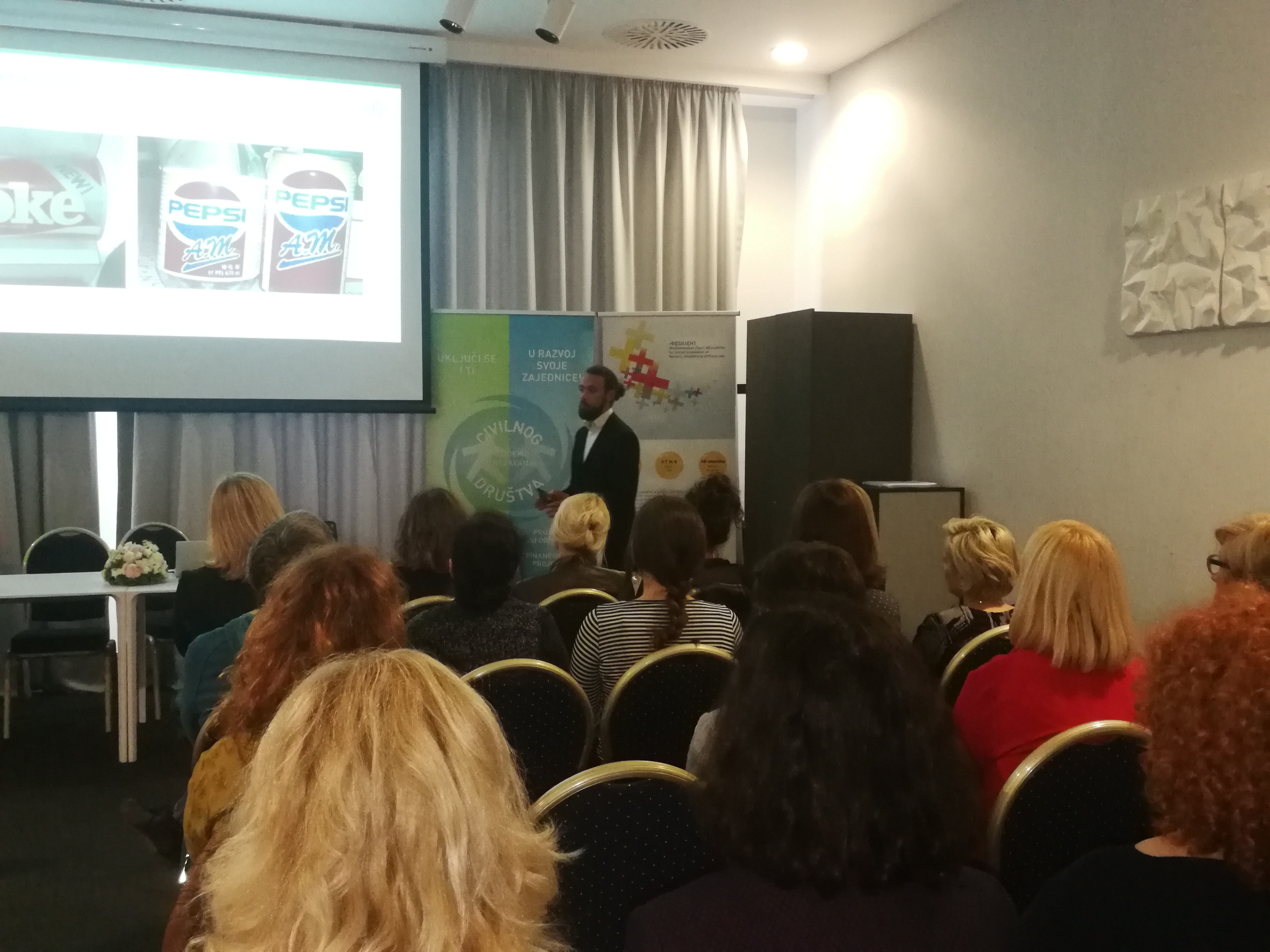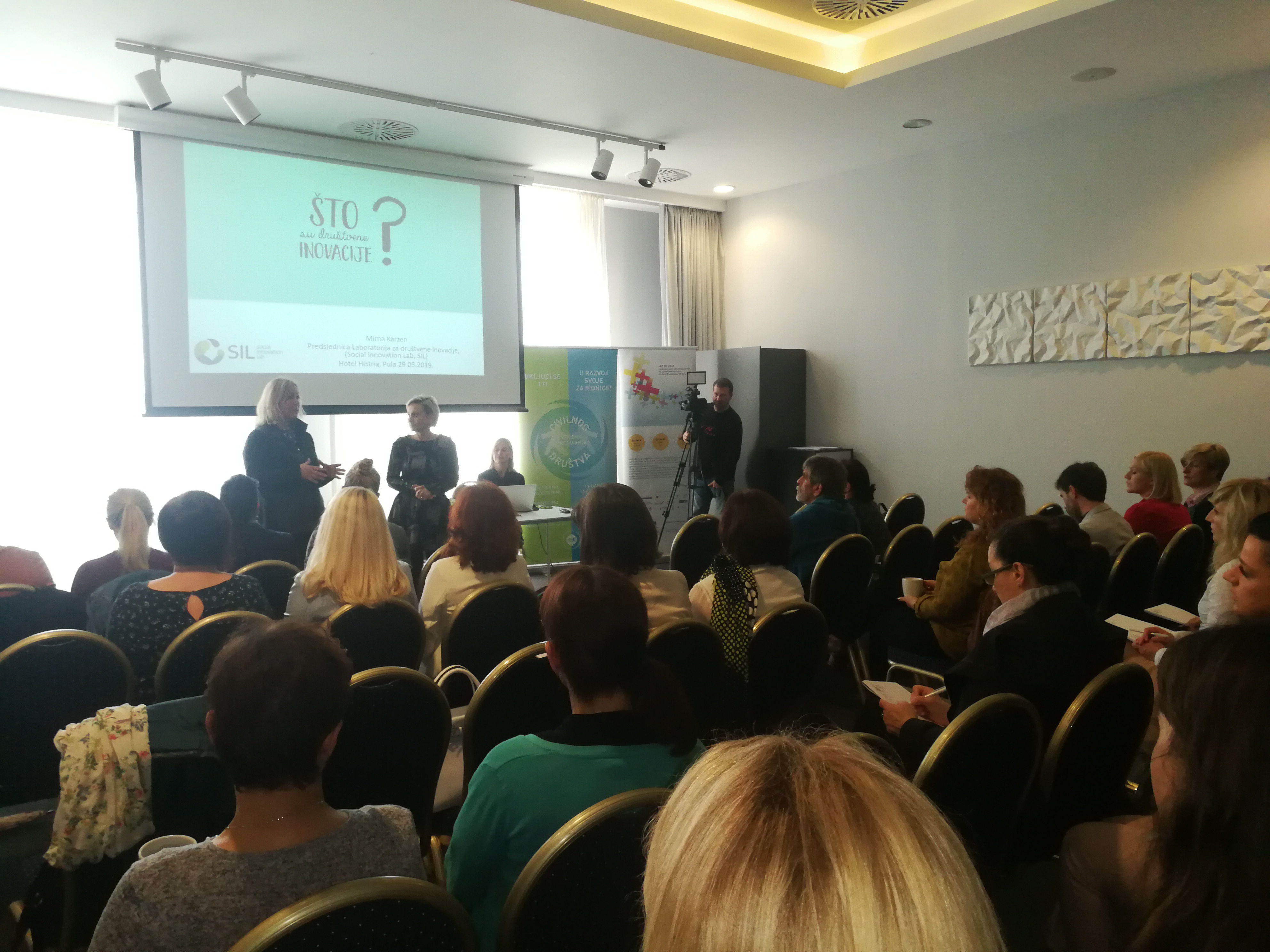 U uvodnom predavanju, Mirna Karzen iz Laboratorija za društvene inovacije Zagreb upoznala je prisutne u temu društvenih inovacija, kako bi im približila pojam društvenih inovacija, primjere dobrih praksi i dobrobiti koju donose društvene inovacije za razvoj društva. Društvene inovacije su prvenstveno nove ideje kojima se želi riješiti neki društveni problem, kojih danas zaista ima sve više, od izoliranosti, isključenosti, siromaštva, socijalne neravnoteže do ekološke neosviještenosti, nedovoljnih novih kompetencija i društvenih vještina koje su potrebne za bolju kvalitetu današnjeg života.