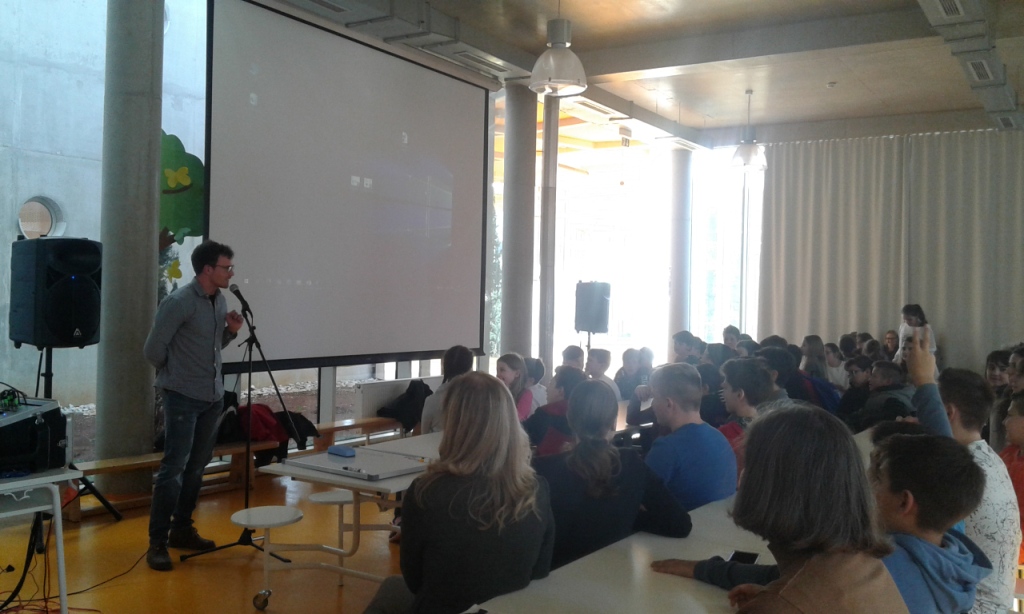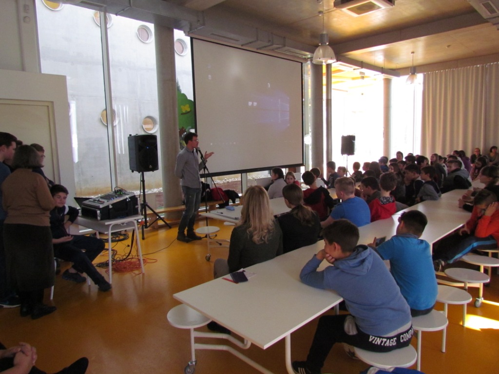 Martina Drašćić iz Zaklade objasnila je učenicima što je logotip, kako se on osmišljava i na koje detalje treba paziti pri odabiru rješenja. Savjetovala je da isprobavaju razne crteže, da pregledaju razne logotipe i napišu zašto im se sviđaju ili ne sviđaju, da odaberu boju, font i da naprave nekoliko verzija. No, s obzirom da natječaj ne završava izradom logotipa, već će učenici trebati i predstaviti svoju ideju i pripremiti prezentaciju o tome kako je logotip nastao treći gost predavač bio je Rade Radolović, glumac i voditelj radionica o javnom nastupu. On je kroz neformalne aktivnosti objasnio učenicima važnost tona i visine glasa, uputio ih je na aktivnost za oslobađanje od straha. Savjetovao ih je da se užive u vlastitu prezentaciju, da pridobiju komisiju potrebno je biti zanimljiv i siguran u sebe. Na koncu su mlade poduzetnice Nada Katić i Kristina Rabar ispričale učenicima svoje iskustvo. Njihova poruka učenicima bila je da budu kreativni, domišljati i inovativni, neka svoje ideje pokušaju prenijeti u praksu. Poručile su da posla uvijek ima ako imaju ideju.