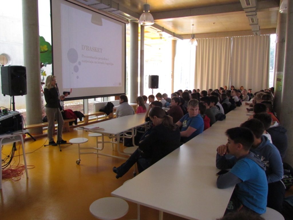Andrej Pevec iz Zaklade objasnio je detalje projekta D'basket kako bi grupe učenika mogle osmisliti odgovarajući logotip. Objasnio je kako se naziv sastoji od 3 glavna elementa: BAsic SKills, Entrepreneurship, Treasures of Diversity. Kroz neformalne aktivnosti, učitelji i učenici bavit će se poticanjem upravo ovih vještina: